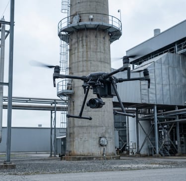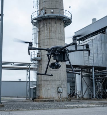 Usługi dronowe znajdują zastosowanie przy ocenie kominów, masztów, słupów, wybranych obiektów przemysłowych oraz innych elementów infrastruktury wymagających bezpiecznej inspekcji z powietrza.