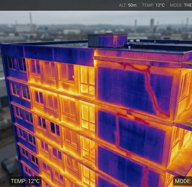 W przypadku wybranych zleceń inspekcja może obejmować również obrazowanie termowizyjne, pomocne w wykrywaniu anomalii cieplnych i wstępnej ocenie miejsc wymagających dalszej diagnostyki.