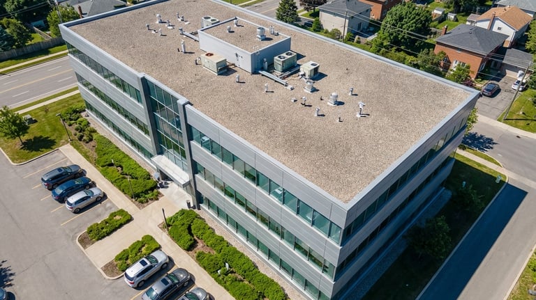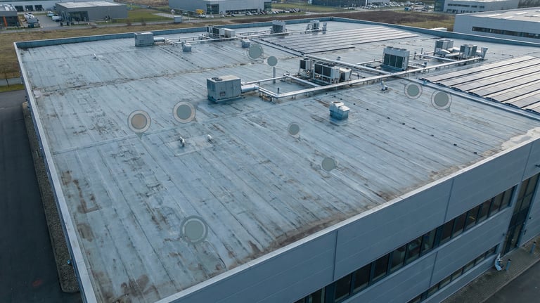 Inspekcje z powietrza pomagają szybko ocenić stan dachu, elewacji, kominów, rynien i innych trudno dostępnych elementów budynku bez konieczności organizowania kosztownego dostępu z ziemi.