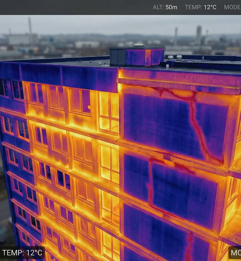 Materiały termowizyjne pomagają w wykrywaniu anomalii cieplnych, wstępnej ocenie strat ciepła oraz lokalizacji miejsc, które mogą wymagać dalszej diagnostyki.